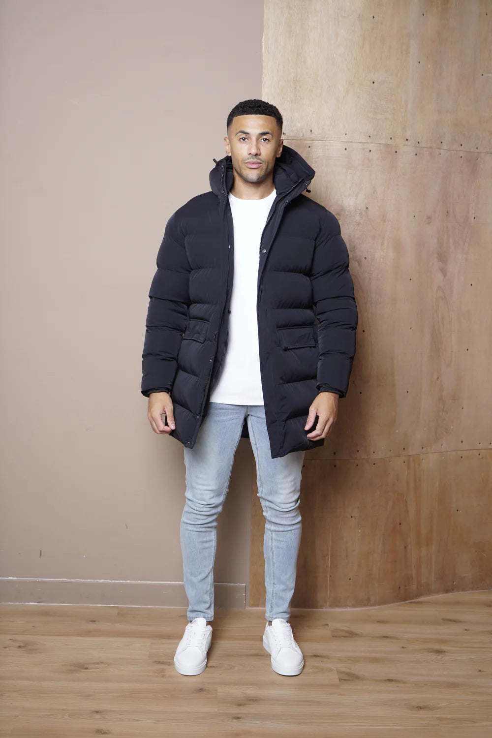 The Capo Mid-Length Puffer Jacket our best coat so far - is the perfect winter essential, crafted for those who stay active while keeping a polished appearance. Designed with a modern fit, this jacket features a padded, quilted body for ultimate insulation while maintaining a lightweight feel. The high-neck hooded design adds extra protection against the elements, while the full front zip ensures easy wear.
